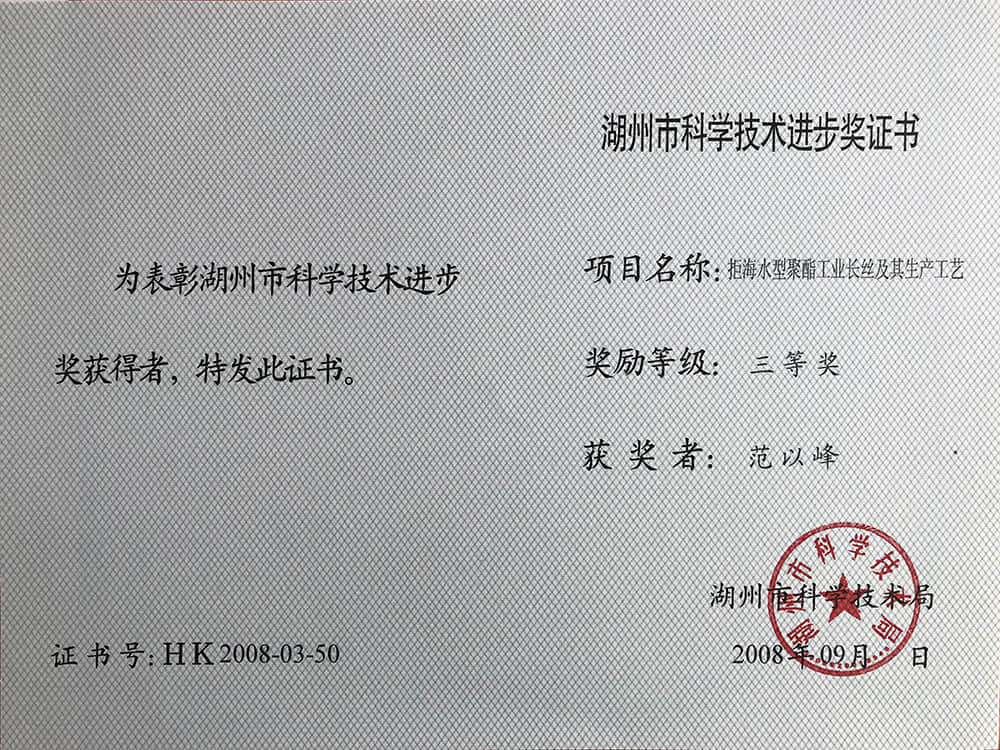 2008湖州市科技進(jìn)步獎(jiǎng)三等獎(jiǎng)-范以峰