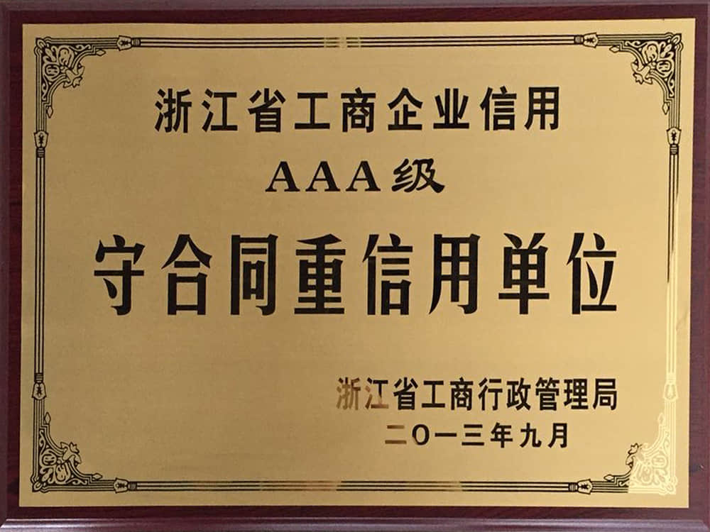 2013浙江省工商企業(yè)信用AAA級(jí)守合同重信用企業(yè)